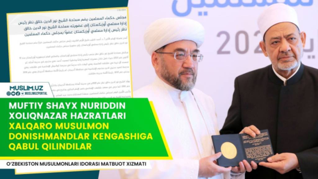 أعلن في 9 فبراير الحالي في العاصمة أبو ظبي في اجتماع مجلس الحكماء المسلمين عن انتخاب سماحة المفتي نور الدين داملا خالقنظروف رئيس إدارة مسلمي أوزبكستان عضوا في مجلس الحكماء المسلمين.