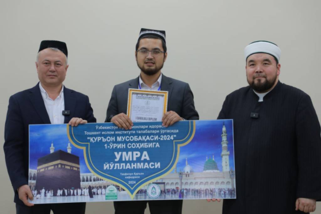 وجاء سراج الدين قارئ جليلوف طالب السنة الثانية في المركز الأول وحصل على تذكرة السفر لأداء مناسك العمرة والجائزة المالية.