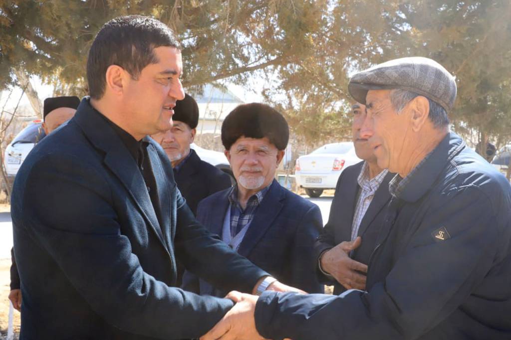 التقى السيد خورشيد طاهروف حاكم منطقة قاراكول بمحافظة بخاري بأفراد الأسر محدودة الدخل المقيمين في الحي السكني "بالوانلار".