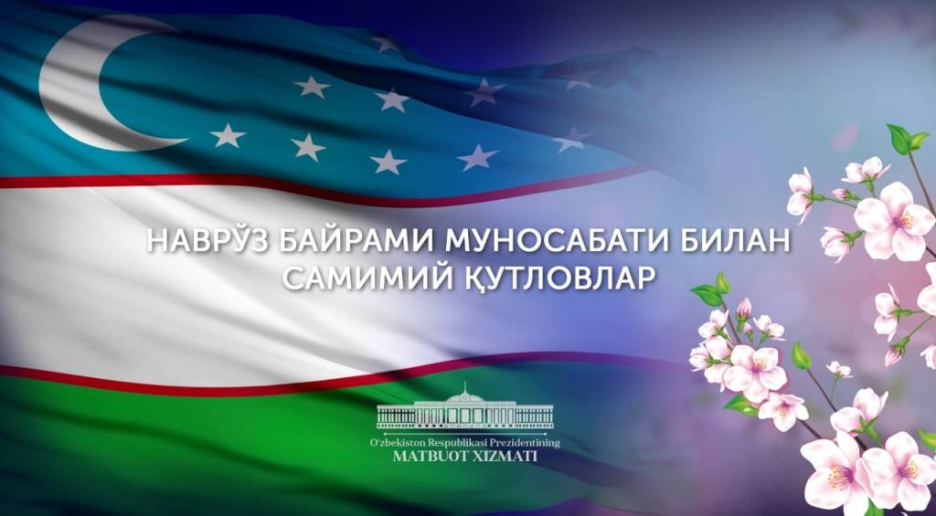 تلقى فخامة الرئيس شوكت ميرضيائيف رئيس جمهورية أوزبكستان برقيات التهاني الخالصة من رؤساء الدول وزعماء المنظمات الدولية والشخصيات العالمية بمناسبة يوم نوروز حيث يعبرون فيها عن تهانيهم الخالصة متمنين لرئيس بلادنا بموفور الصحة والعافية والتوفيق، ولشعب أوزبكستان مزيدا من السلام والأمان والتقدم والرفاهية.