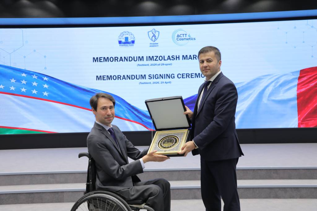 Shu bilan bir qatorda, tashrif doirasida Fransiya va O‘zbekiston o‘rtasida 2025-yilda erishilgan kelishuvlarning mantiqiy davomi sifatida “Tashkent Pharma Park” farmatsevtika klasteri hamda Fransiyaning COSMETIC VALLEY klasteri muvofiqlashtiruvchi hisoblangan ACTT4Cosmetics Yevropa konsorsiumi o‘rtasida o‘zaro anglashuv memorandumi imzolandi. Ushbu hujjat qo‘shma ilmiy-tadqiqot va innovatsion loyihalarni amalga oshirish, texnologiyalar va tajriba almashish, startaplar va qo‘shma korxonalarni qo‘llab-quvvatlash hamda mahalliy kompaniyalarni xalqaro bozorlarga chiqishini rag‘batlantirishga qaratilgan.