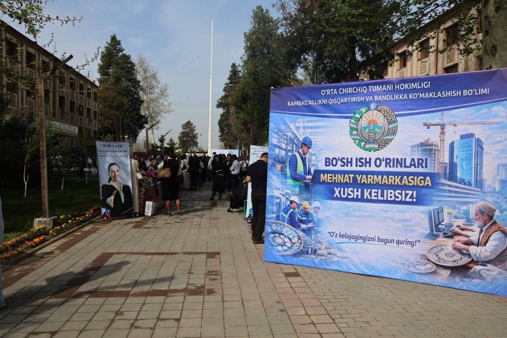 Ўрта Чирчиқ туманида ўтказилган меҳнат ярмаркасига ишсиз алимент тўловчилар, ҳарбий хизматни ўтаб қайтганлар, олий ва ўрта махсус таълим муассасалари битирувчилари ҳамда ишсиз хотин-қизлар жалб этилди.