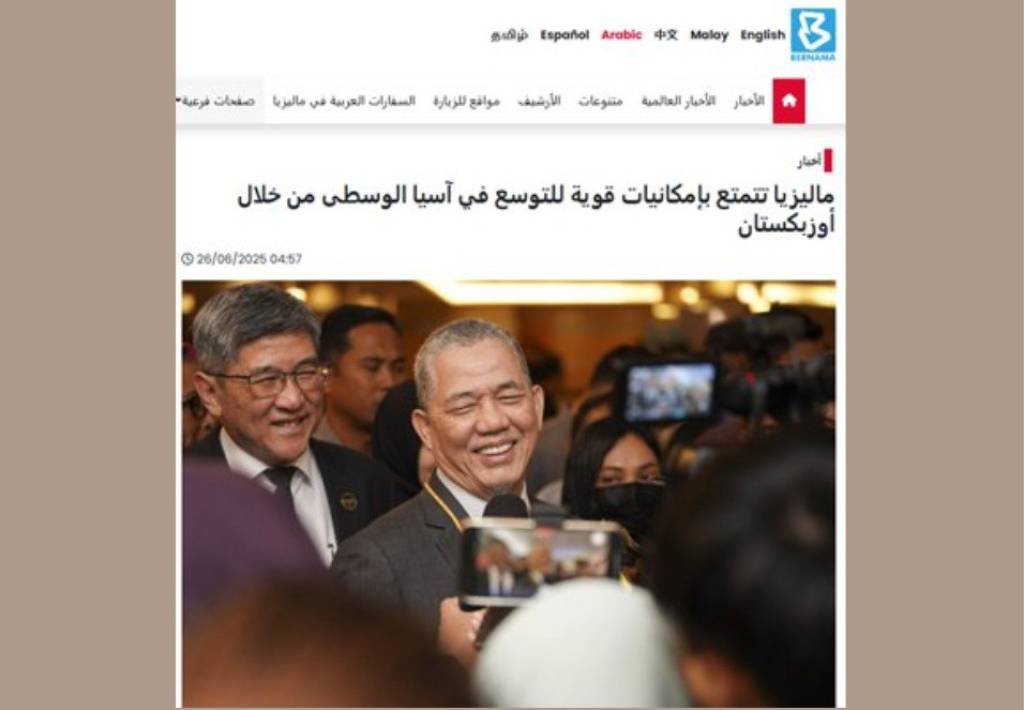 马新社发表题为《马来西亚有很大潜力通过乌兹别克斯坦向中亚扩张》的文章,强调我国可以作为该国大规模进入该地区最便捷的门户。
