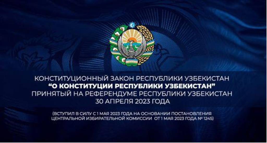 Das in einem Referendum am 30. April angenommene Verfassungsgesetz "Über die Verfassung der Republik Usbekistan" ist durch einen Beschluss der Zentralen Wahlkommission am 1. Mai 2023 in Kraft getreten.