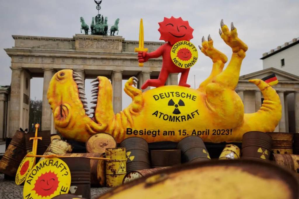 Am Samstag veranstaltete Greenpeace eine Kundgebung am Brandenburger Tor in Berlin, um einen falschen Dinosaurier - ein Symbol für die veraltete Atomkraft - zu vergraben, der von der Anti-Atomkraft-Bewegung besiegt wurde, mit dem Slogan "Endlich ist die Atomkraft Geschichte!" Auch in anderen Städten wurde die Abschaltung von drei Atomkraftwerken gefeiert.