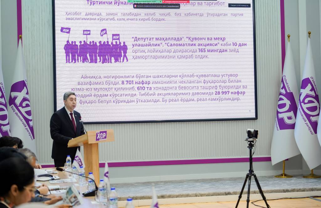 Шунингдек, партия ҳудудий кенгашлари ва маҳаллий Кенгашлардаги партия гуруҳлари фаолияти ҳам сарҳисоб қилинди. Улар томонидан электорат манфаатлари билан боғлиқ долзарб масалаларни ўрганиш, уларни очиқ муҳокама қилиш ва қатъий сиёсий позиция билдиришда етарли ташаббус кўрсатилмагани танқид қилинди.