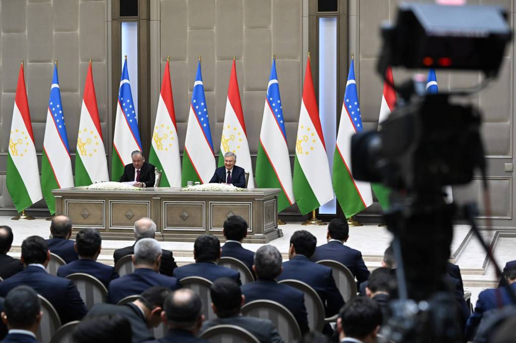 Ўзбекистон Республикаси Президенти Шавкат Мирзиёев ва Тожикистон Республикаси Президенти Эмомали Раҳмон Кўксарой қароргоҳида оммавий ахборот воситалари вакиллари билан бўлиб ўтган учрашувда Олий давлатлараро кенгашнинг биринчи йиғилиши якунлари юзасидан фикрлари билан бўлишдилар.