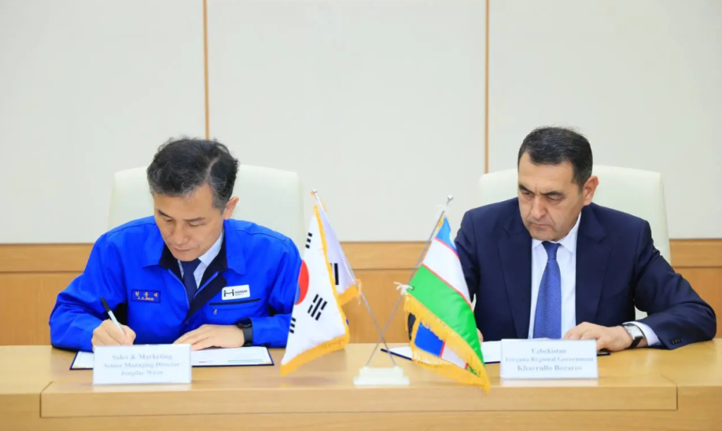 A video presentation was shown highlighting Hansae Mobility’s activities. Following the negotiations, a Memorandum of Cooperation was signed between Fergana region and the company.