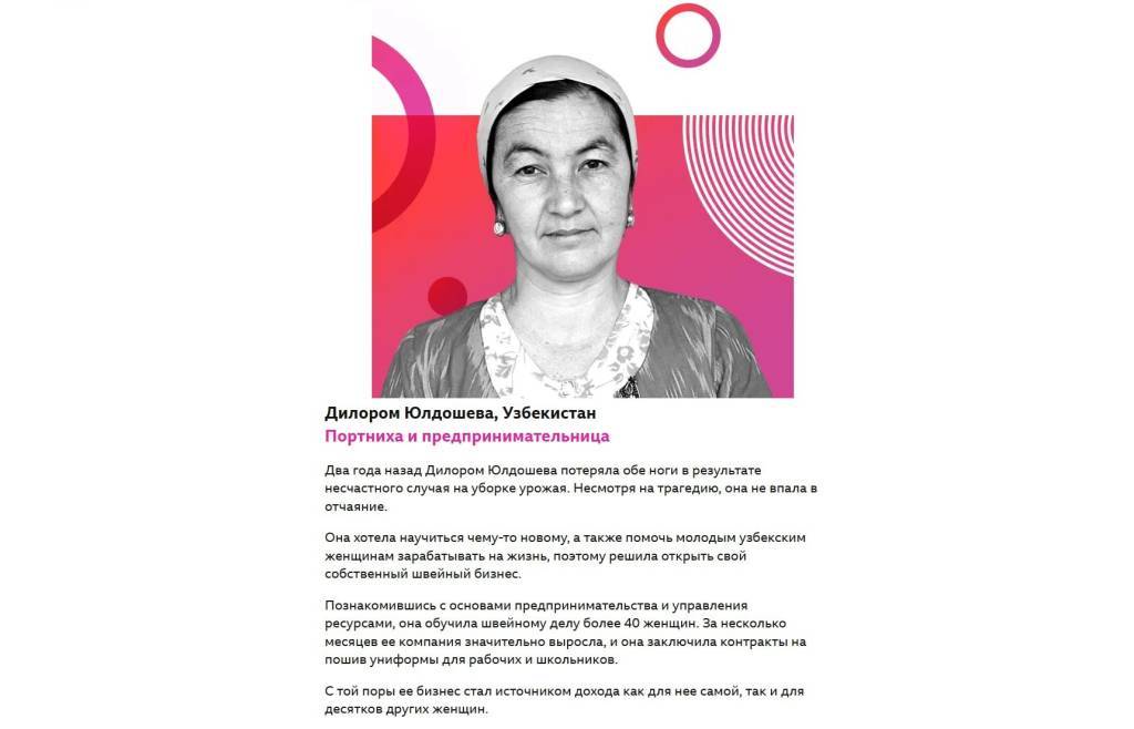 Two years ago, Dilorom Yuldosheva lost both legs in an accident. But that did not stop her from dreaming big. She wanted to learn new skills while helping young Uzbek women make a living, so she set up her own sewing business.