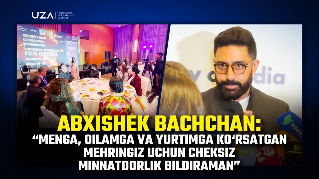 “I am grateful to the Indian Embassy for organizing this event”, says Abhishek Bachchan. “I visited Tashkent 40 years ago during a film festival with my parents. Returning here is a great joy for me. The cultural ties between our countries are strong, and I hope our cooperation will continue to grow. Global cinema is gaining more recognition, paving the way for Uzbek cinema to enter the international stage. It has been my dream to shoot films in Uzbekistan and to introduce Uzbek films to Indian audiences. Respect for women is a vital topic for me. The films at this festival are dedicated to International Women’s Day, but women should be valued not only on special occasions. They are irreplaceable in our lives, and we must respect and cherish them. My father keeps writing to me, eager to know what is happening here every minute. I express my infinite gratitude for your love and respect for me, my family, and my country”.