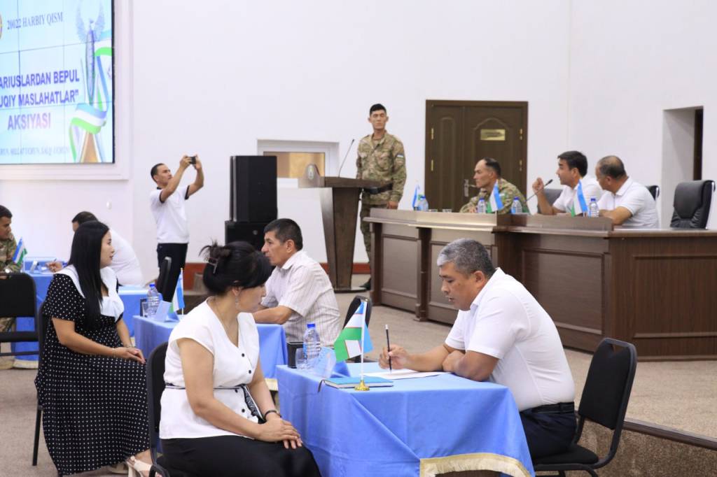 Дастлаб сўзга чиққанлар мазкур тадбир жамиятда ҳуқуқий онг ва ҳуқуқий маданиятни юксалтириш тизимини такомиллаштириб бориш орқали аҳолининг барча қатламларининг ҳуқуқий саводхонликка эришишини таъминлаш, хусусан, ҳарбий хизматчилар ва уларнинг оила аъзолари ўртасида ҳуқуқий маданиятни ошириш, нотариал хизматлар мазмун-моҳияти ҳамда уларнинг кундалик ҳаётдаги аҳамияти ҳақида тушунчаларни кенгайтириш, ҳуқуқий саводхонликни мустаҳкамлаш орқали фуқароларнинг ўз ҳуқуқ ва манфаатларини қонуний асосда ҳимоя қилишга кўмаклашиш мақсадида ўтказилаётганлигини айтиб ўтишди.