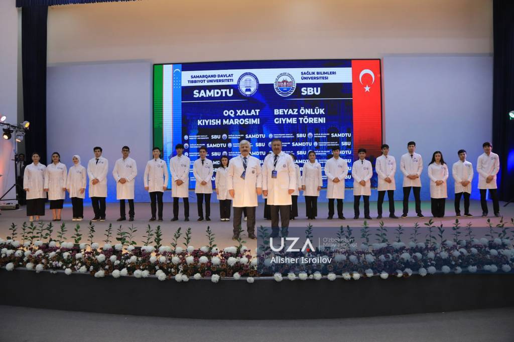 Самарқанд давлат тиббиёт университети ҳамда Туркиянинг етакчи олий ўқув юртларидан бири бўлган Соғлиқ билимлари университети ўртасидаги ҳамкорлик асосида ташкил этилган қўшма таълим дастури доирасида биринчи босқичда таҳсил олаётган талабаларга “Оқ халат кийдириш маросими” ўтказилди.