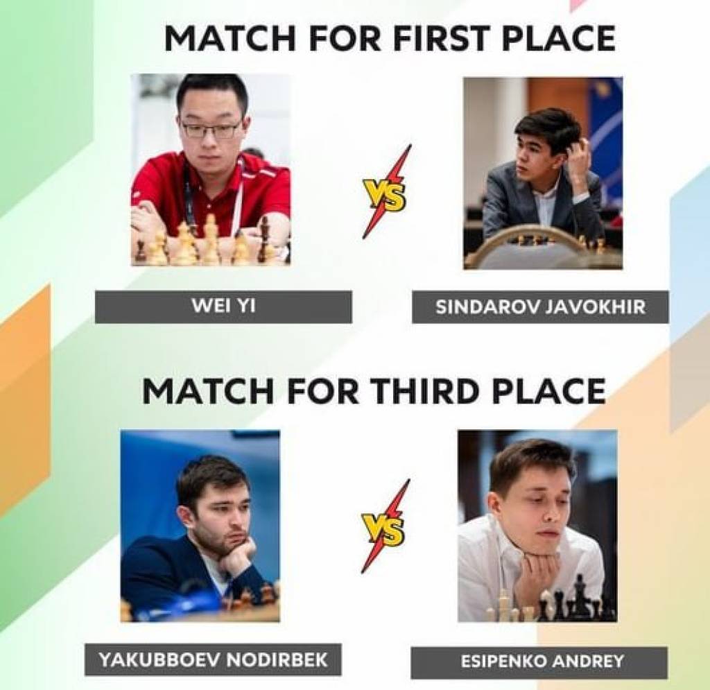 Uzbekistan’s Nodirbek Yakubboev lost the first game of the third-place match to Andrey Esipenko of Russia.