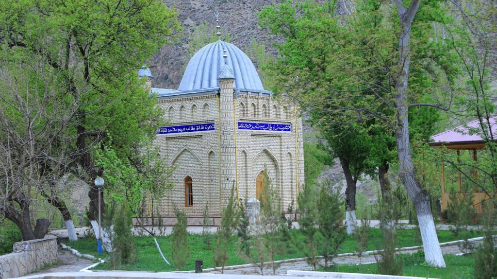 There is a symbolic tomb of Hazrat Ali in the village of Shakhimardan, Fergana region. The origin of the word Shakhimardan is also connected with his name and means “King of Braves”. According to local legend, Hazrat Ali often visited Shakhimardan and was buried here. According to legend, his grave is located at the confluence of two rivers, surrounded by mountains on four sides, but these assumptions have no scientific justification.
