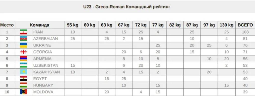 The top five teams were Iran, Azerbaijan, Ukraine, Georgia, and Armenia.