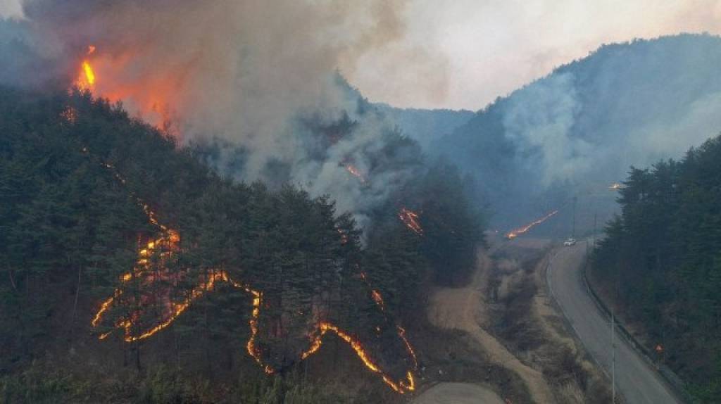 Расмийларга кўра, Жанубий Корея шарқидаги Гангвон музофоти Госеонг туманида кеча тушдан кейин бошланган ёнғин сабаби ҳали номаълум.