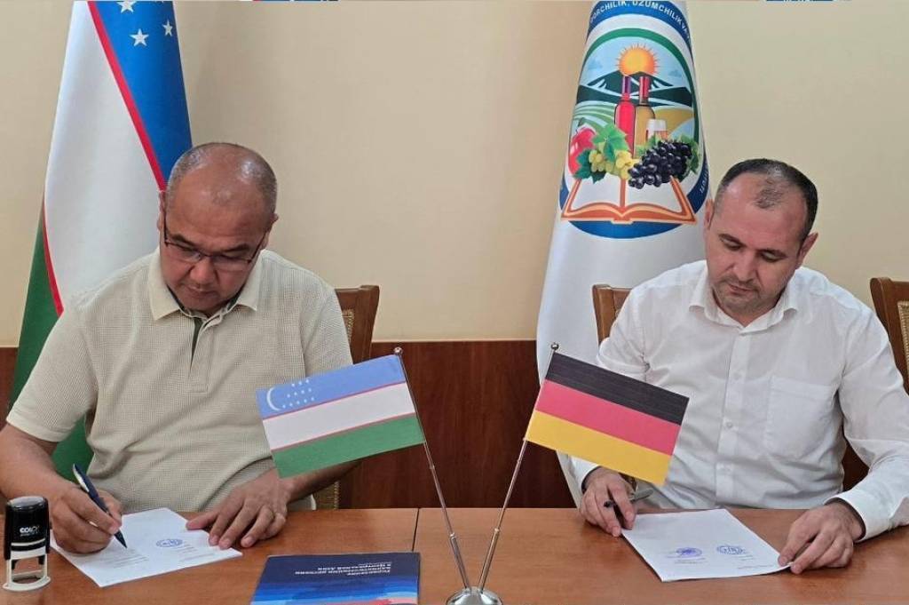 As part of the project “Climate Risk Management in Central Asia”, a Memorandum of Understanding was signed between the Scientific Research Institute of Horticulture, Viticulture, and Winemaking named after Academician M. Mirzayev and the German Society for International Cooperation (GIZ).