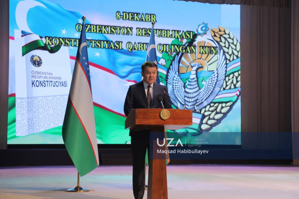 Тадбирда Қорақалпоғистон Республикаси Жўқорғи Кенгеси раиси А. Оринбаев сўзга чиқиб, йиғилганларни Ўзбекистон Республикаси Конституцияси қабул қилинган сана билан самимий муборакбод этди.