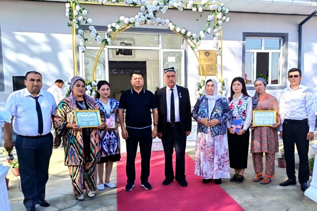 Мазкур бинонинг очилиш маросимида вилоят ва туман раҳбарлари, маҳаллий жамоатчилик ва фаоллар иштирок этиб, қишлоқ аҳлини янги иншоот билан табриклашди.Шунингдек, маҳалланинг икки нафар қизи олий таълим муассасасига грант асосида қабул қилингани муносабати билан уларнинг ота-оналарига сертификатлар топширилди.