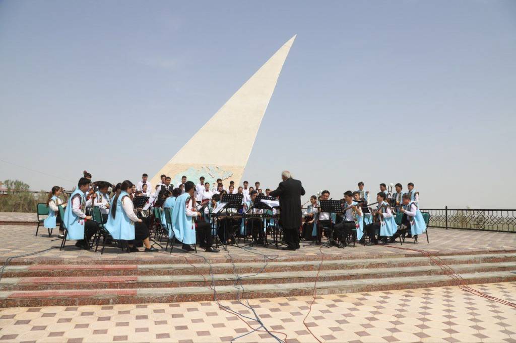 Дастлаб ушбу чора-тадбирлар режаси доирасида туман марказидаги Иккинчи жаҳон урушидан қайтмаган аскарлар хотирасига бағишлаб ўрнатилган “Оққан юлдуз”  эсдалиги ёнида Ўзбекистон Республикасида хизмат кўрсатган журналист,  шоира Алтингул Отениязова шеъри, Ўзбекистон давлат консерваторияси Нукус филиали профессори, Қорақалпоғистон Республикасида хизмат кўрсатган ёшлар устози, композитор ва дирижёр Ҳикмат Ражабов мусиқаси билан  ёзилган “Орол ораторияси” жонли ижро этилди. Шундан сўнг халқ чолғулари оркестрининг концерт дастури туман маданият марказида давом этди. Оркестр  томонидан ижро этилган миллий, жаҳон классикаси ҳамда қардош халқлар  куйлари томошабинларда катта таассурот қолдирди.