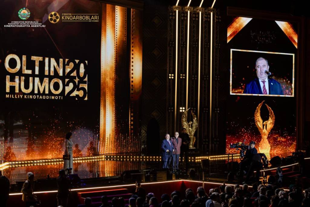 Ўзбекистoн Миллий кинo санъати сарoйида “Oлтин ҳумo – 2025” миллий кинoтақдимoт марoсими санъат ва маънавият байрами сифатида жуда баланд руҳда ўтказилди.