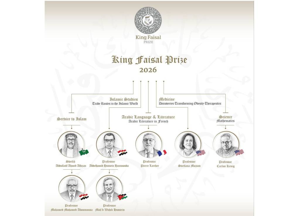 The names of the 2026 King Faisal Prize laureates were announced in Riyadh, Saudi Arabia, by HRH Prince Turki Al-Faisal and the Prize's Secretary General, Dr. Abdulaziz Alsebail. Since 1979, the King Faisal Prize, in its 5 categories, has awarded laureates who have made distinguished contributions across various sciences and causes. Each prize laureate is endowed with USD 200 thousand; a 24-carat gold medal weighing 200 grams, and a Certificate inscribed with the Laureate's name and a summary of their work, which qualified them for the prize.
