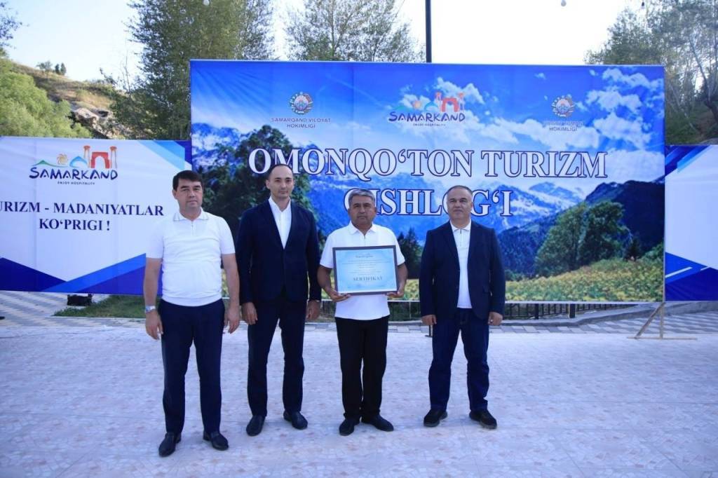 Участникам мероприятия были представлены презентации, посвященные новым туристическим возможностям села. Председателю махалли вручен официальный сертификат о присвоении Омонкутону статуса туристического села.