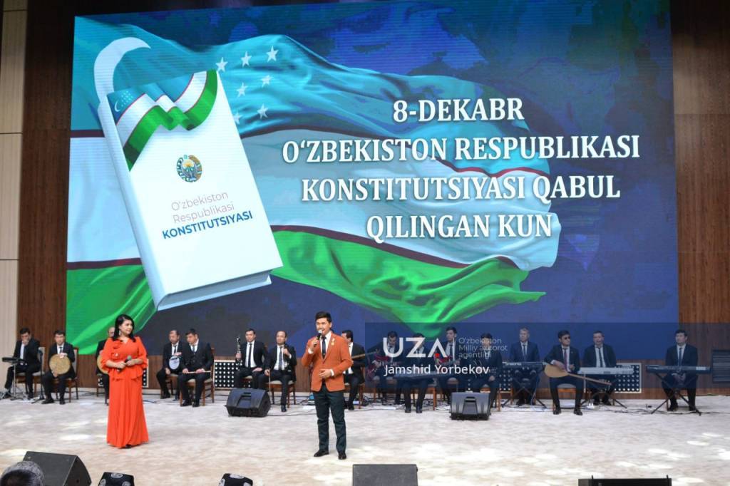 Тадбирда вилоят ҳокими Улуғбек Мустафоев, давлат ва жамоат ташкилотлари раҳбарлари, фахрийлар, зиёлилар, меҳнат фаоллари, ёшлар ҳамда оммавий ахборот воситалари вакиллари иштирок этишди. Унда сўз олган вилоят раҳбари республика Бош қомусининг 33 йиллиги байрами билан барча тадбир иштирокчиларини самимий муборакбод этиб, конституциямизнинг мамлакат мустақиллиги учун мустаҳкам ҳуқуқий асос эканини таъкидлади.