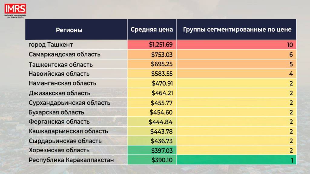 Experts from the Institute for Macroeconomic and Regional Studies on the olx.uz platform grouped prices for housing offered in the 2nd quarter by 115 regions.