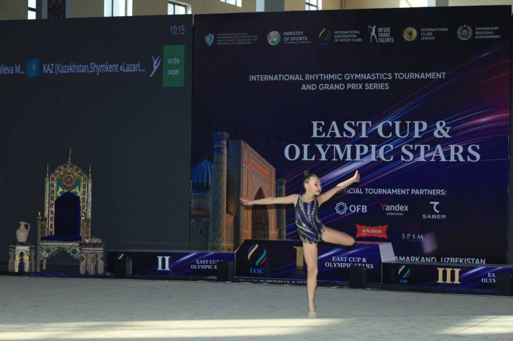 The International Rhythmic Gymnastics Tournament “East Cup & Olympic Stars” took place at the Specialized Children’s and Youth Sports School for Team Sports and Athletics in Samarkand.