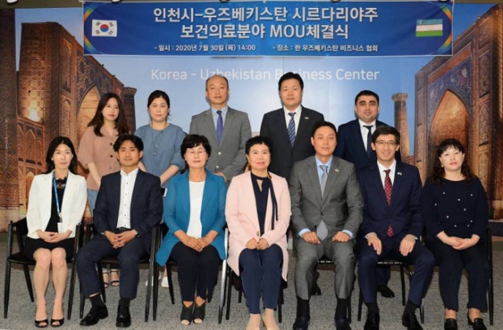 Korea – Uzbekistan Business Center in the city of Incheon, the Embassy of Uzbekistan together with the Korea – Uzbekistan Business Association under the Ministry of Trade, Industry and Energy of the Republic of Korea held a ceremony of signing a Memorandum of Understanding between the khokimiyat of Syrdarya region and Health and Welfare Bureau of Incheon Administration on exchange and cooperation in healthcare and medicine, via videoconference.