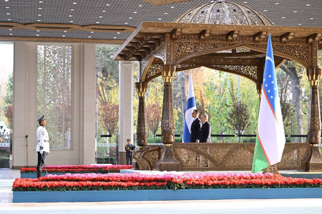 On October 31, a solemn ceremony was held at Kuksaroy Residence to welcome the President of the Republic of Finland, Alexander Stubb, who is paying an official visit to the Republic of Uzbekistan.