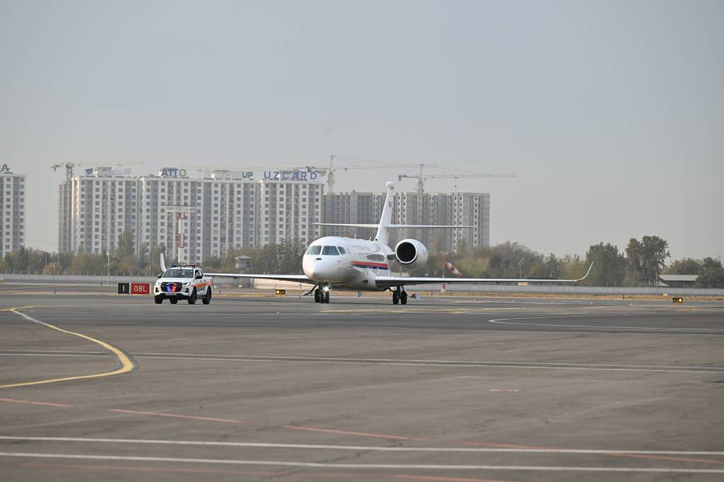 At Tashkent International Airport, the distinguished guest was welcomed by Prime Minister of the Republic of Uzbekistan A. Aripov and other officials.