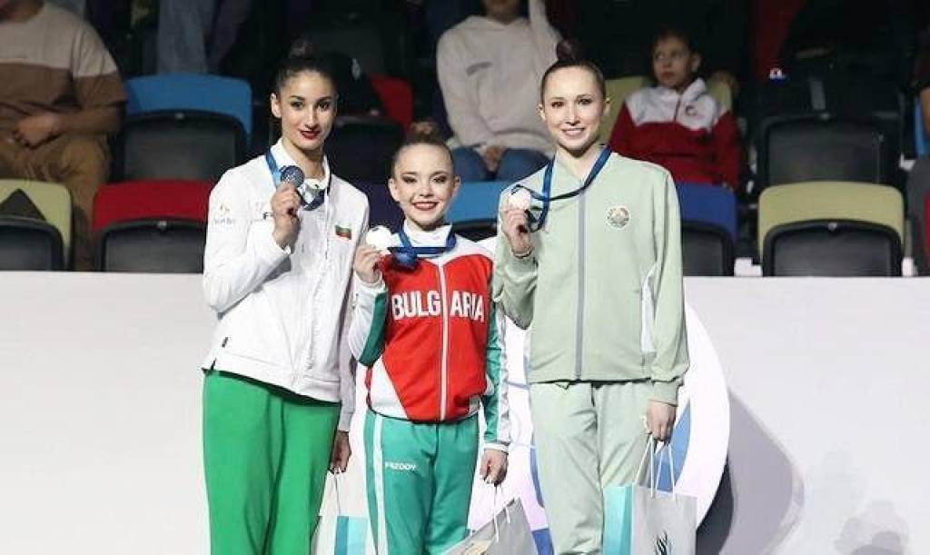In the exercises with the ribbon, the first and second places were taken by Bulgarian national team members.