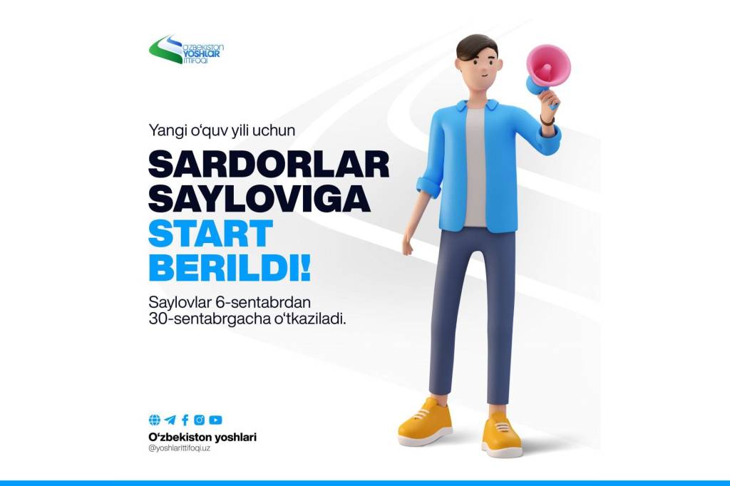 Республикамиз бўйлаб барча ҳудудларда 6 сентябрдан 30 сентябрга қадар ёшлар ўртасида Сардорлар сайловлари бўлиб ўтади. Ўзбекистон ёшлар иттифоқи ахборот хизматининг маълумотларига кўра, сайловда иқтидорли, билимли ва шижоатли, айниқса, тенгдошларини бир мақсад йўлида бирлаштира оладиган хоҳлаган ёшлар фаол иштирок этишлари мумкин.