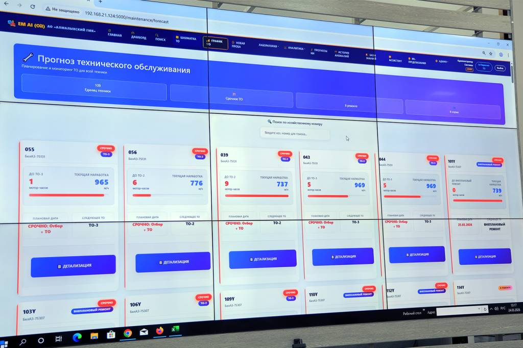 EM AI (Lab) — лаборатория ва операцион маълумотларни ягона рақамли муҳитга бирлаштирувчи ақлли платформадир. Ҳозирда ушбу тизимни жорий этиш ишлари якуний босқичга чиққан. Платформа техниканинг фойдаланиш тарихи акс этган "рақамли паспортларини" яратиш, қоғозбозликдан воз кечиш ҳамда QR-кодлар ёрдамида намуналар ҳисобини автоматлаштиришни таъминлайди. Энг муҳими, СИ технологиялари техника эскиришининг илк белгиларини аниқлайди. Яъни, транспорт воситасининг иш режими қайд этилиб, эҳтиёт қисмлар носоз ҳолатга келишидан аввал хабар беради. Бу муҳандислик хизматлари учун аниқ таҳлилий хулосалар бериб, кутилмаган бузилишларнинг олдини олади.