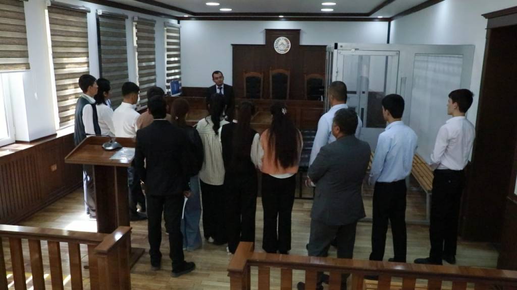 Шундан сўнг талабалар суд биноси ва мажлислар заллари билан яқиндан танишди. Уларга фуқароларнинг судларга мурожаат қилиш тартиби, жиноят ишларини кўриб чиқиш жараёни, суд муҳокамаларининг босқичлари, шунингдек, судья ва суд ходимлари фаолиятининг ўзига хос жиҳатлари ҳақида амалий тушунчалар берилди.