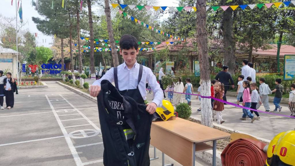 Тадбир доирасида ўқувчи-ёшларга ёнғин-қутқарув хизматида фойдаланиладиган махсус техникалар ва асбоб-ускуналар намойиш этилди ҳамда зилзила вақтида тўғри ҳаракатланиш зилзила мобиль симулятори орқали батафсил тушунтириб берилди. Ўқувчиларни қизиқтирган саволларга жавоб берилди.