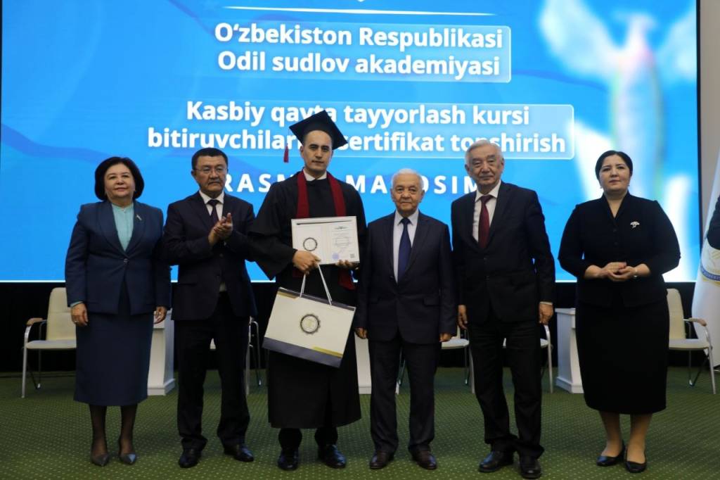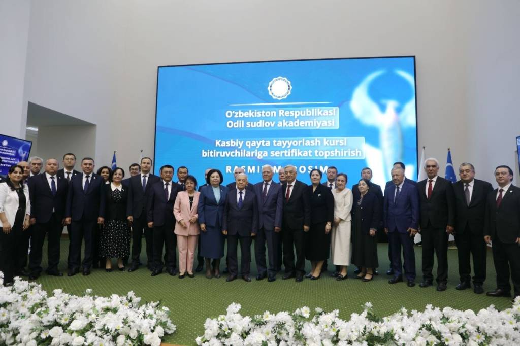 O‘zbekiston Respublikasi Odil sudlov akademiyasining Kasbiy qayta tayyorlash kursi bitiruvchilariga tantanali sertifikat topshirish rasmiy marosimi bo‘lib o‘tdi.