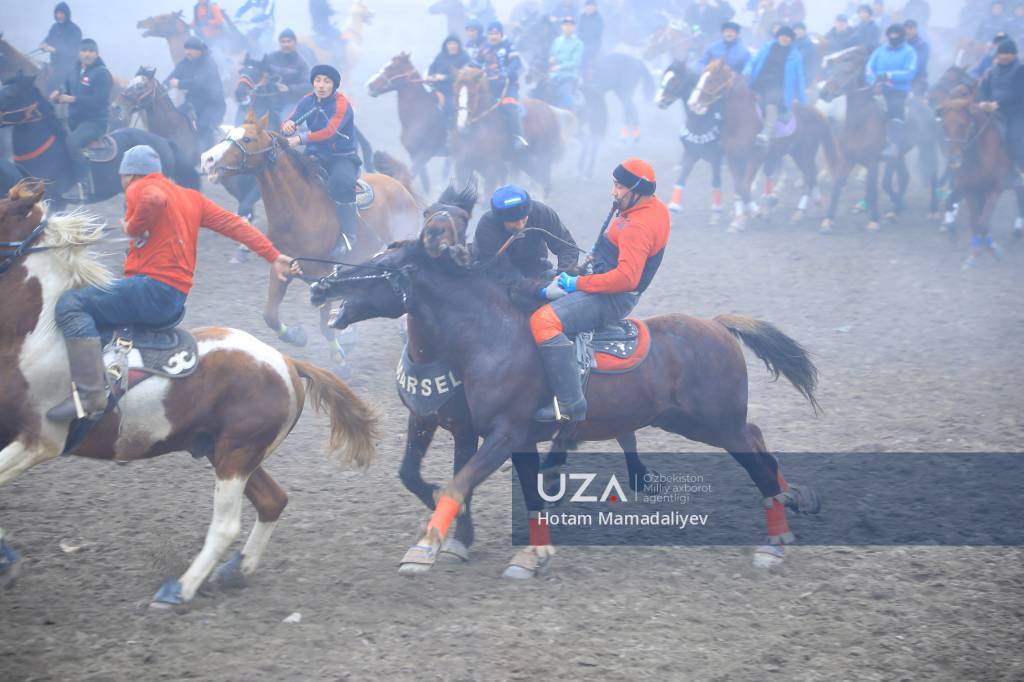 Наманганда Өзбекстан Республикасы Қарулы Күштерінің құрылғанына 34 жыл толуы және 14 қаңтар – Отан қорғаушылар күніне орай ұлттық рухты ұлықтаған дәстүрлі көкпар сайысы ұйымдастырылды.