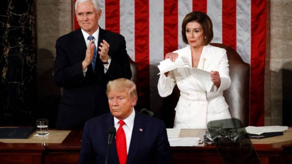 Трамп мінбердегі өз сөзінің соңын АҚШ-тың кемел болашағын іспеттейтін қанатты сөзбен аяқтарда Конгреске жиналғандар бірден оны қол соға қошеметтеп қолдады. Дәл осы кезде артқы планда Нэнси Пелоси оның сөздік мәтіні жазылған қағазды жыртып тастады. Спикердің бұл әрекеті Трапм оның қолын алмағанға жасаған жауабы болса керек. Бірақ бұл жағдай қазірде әлемдік басылым беттерінде өте қызу талқыға түсіп жатыр. Ал оны спикер Пелоси ханымның өзі «жәй ғана сыпайылық» деп іспеттеген. Алайда Ақ үй президент жолдауы кезінде жасаған мына әрекеті үшін Нэнси Пелосиді құрметсіздік көрсетті деп айыптаған.