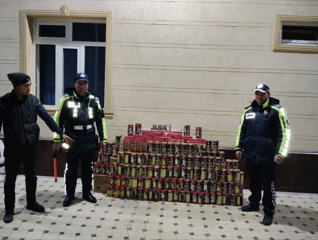 “Vodiy-Toshkent” yo‘nalishida harakatlanib kelayotgan oq rangli “Isuzu” rusumli 25 F 410 KA davlat raqam belgili yuk avtomobili to‘xtatilib tekshirilganida, 2001 yilda Jizzax viloyatida tug‘ilgan haydovchi O. S. M. boshqaruvidagi ushbu transport vositasi yukxonasiga ortilgan qoplar ichida xorijda ishlab chiqarilgan, tegishli hujjatlari bo‘lmagan, 12 dona oq qopda jami 95 dona “Novыy VEK” nomli va 4 ming 750 dona “Treniya” nomli pirotexnika vositalari borligi aniqlandi. Ushbu xavfli buyumlar noqonuniy ravishda Qo‘qon shahridan Samarqandga olib ketilayotgani ma’lum bo‘ldi. Qayd etish kerak, mazkur pirotexnika vositalarining taxminiy narxi 18 million so‘mga yetadi.