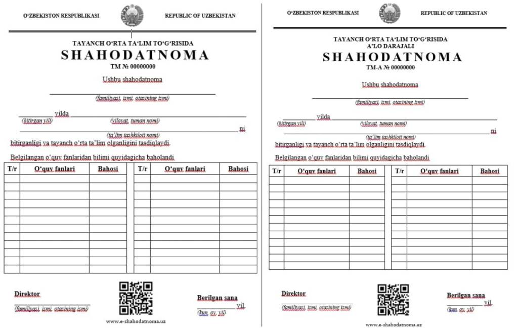 Elektron shahodatnomaga QR-kod tasviri tushirilib, uni istalgan vaqtda elektron platforma orqali tekshirib olish yoki shahodatnoma yo‘qotib qo‘yilgan taqdirda dublikat olish uchun ovora bo‘lmasdan shu zahotiyoq elektron bazadan qayta yuklab olish mumkin bo‘ladi.