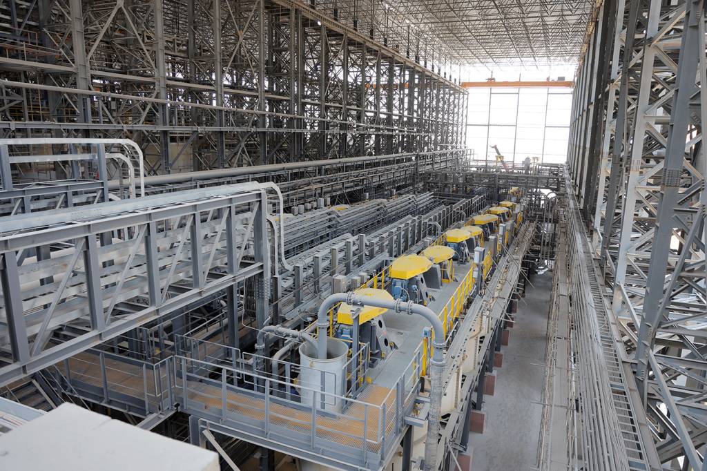 Fabrikaning ustun jihati nafaqat ishlab chiqarish quvvatida, balki texnologik darajasi va avtomatlashtirish tizimlarining yuqoriligida ham yaqqol namoyon bo‘ladi. Majmuada dunyoning yetakchi ishlab chiqaruvchilari – “Metso Outotec”, “FLSmidth”, “Weir Minerals”, “Siemens” kabi kompaniyalar mahsulotlari uyg‘unlashtirilgan. Dastlabki maydalash uchun KKD-1500/200 maydalagichi, asosiy qayta ishlash uchun MSHS-7,3x13,0 sharli tegirmonlari o‘rnatilgan.
