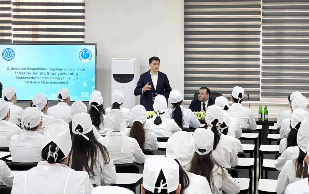 Sog‘liqni saqlash vaziri Amrillo Inoyatov Toshkent davlat stomatologiya instituti talabalari bilan uchrashdi. Muloqotda vazir yoshlarning fikr-mulohaza va takliflariga quloq tutdi. Ularni qiynayotgan masalalar yechimi yuzasidan mas’ullarga topshiriqlar berdi. O‘z navbatida, rejalashtirilayotgan yangiliklar xususida to‘xtaldi.