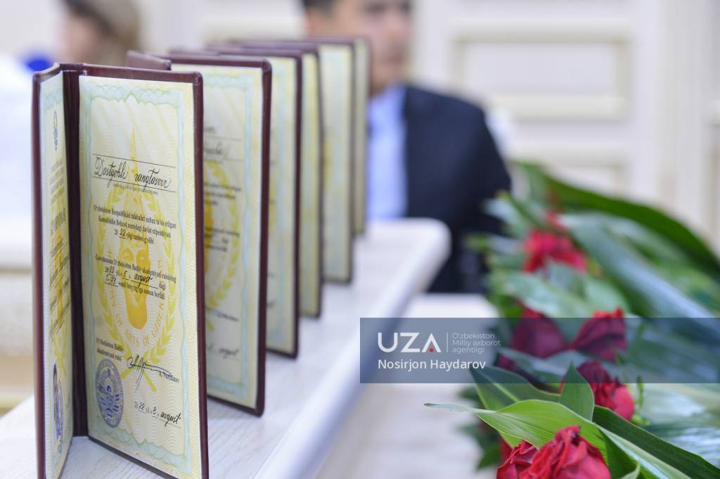 Tantanali marosimda O‘zbekiston Badiiy akademiyasi raisi, O‘zbekiston xalq rassomi A.Nuridinov talabalarga ushbu davlat stipendiyasi guvohnomasini topshirdi.