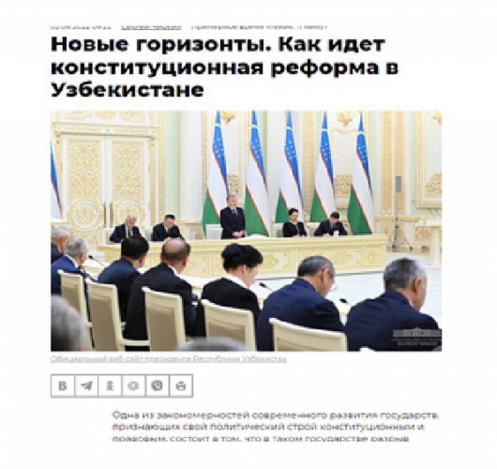 Rossiyaning eng ommabop nashrlaridan biri – “AIF” haftaligida Rossiya hukumati huzuridagi Qonunchilik va qiyosiy huquq instituti yetakchi ilmiy xodimi, yuridik fanlar nomzodi Sergey Chirkinning mamlakatimizdagi konstitutsiyaviy islohotga bag‘ishlangan maqolasi e’lon qilindi.