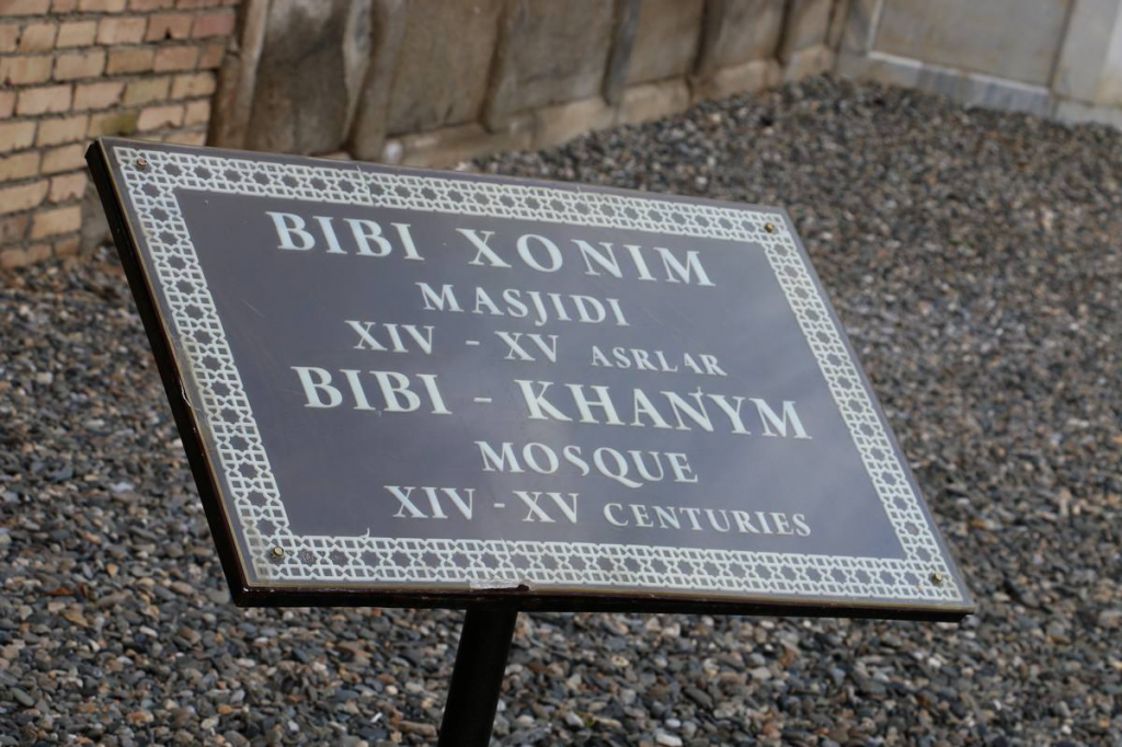 Darhaqiqat, bugun ham o‘sha Bibixonim nomi zikr etilgan zarhal peshtaxta masjid darvozasi yonida turibdi. Shu lavha tufayli bo‘lsa kerak, samarqandliklar “Bibixonim masjidi” deb aytib keladi.