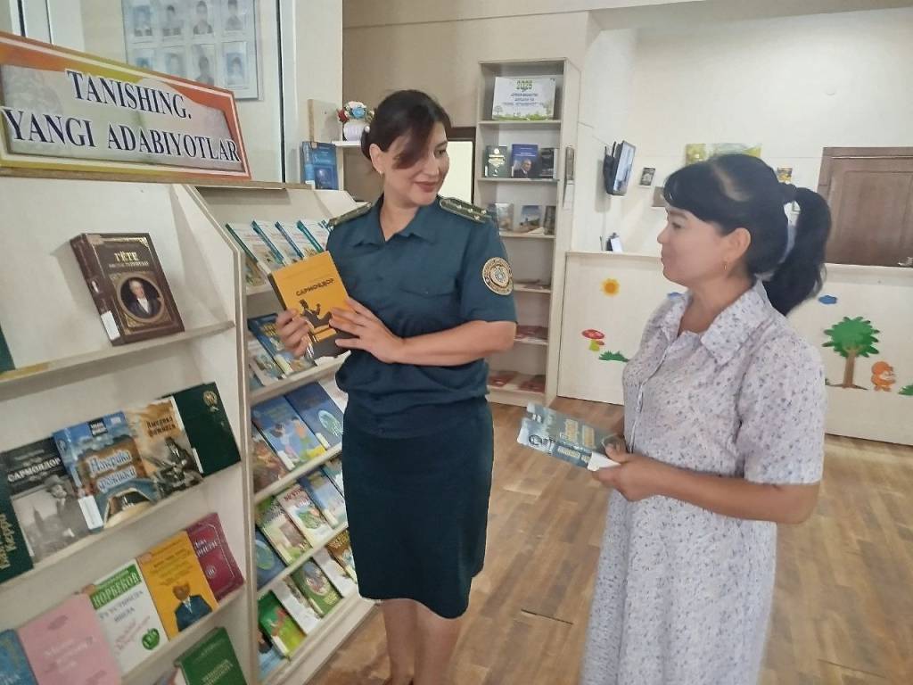 Мамлакатимизда китоб мутолааси ва китобхонликни кенг тарғиб қилишга алоҳида эътибор қаратилаётган ҳозирги пайтда осойишталик посбонлари маърифат маскани билан яқиндан танишди. Улар кутубхона жамоасининг китобхонликни кенг тарғиб қилиш, аҳолининг китоб ўқишга бўлган қизиқишини ошириб, китобхонлик маданиятини шакллантириш, ёш авлоднинг миллий ғурур, ифтихор, Ватанга муҳаббат ва юрт тараққиётига дахлдорлик туйғусини юксалтириш юзасидан амалга ошираётган ишлари ҳақида атрофлича маълумотга эга бўлишди. Хизматдан бўш вақтларида мутолаа қилиш учун ўзлари қизиққан бадиий, тарихий, ҳуқуқий ва бошқа китобларга катта қизиқиш билдирди.
