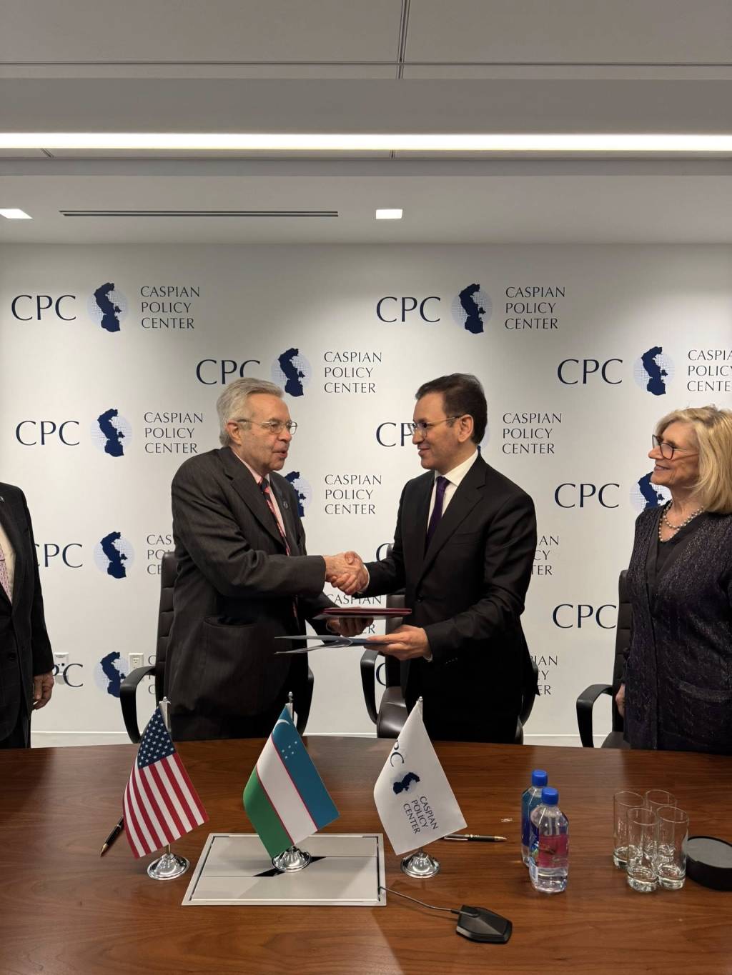 Vashington shahriga tashrifi doirasida Markaziy Osiyo xalqaro instituti direktori Javlon Vahobov Kaspiy siyosiy markazi Xavfsizlik va siyosat dasturi rahbari, boshqaruv kengashi a’zosi Richard Xogland bilan hamkorlik to‘g‘risida bitim imzoladi.